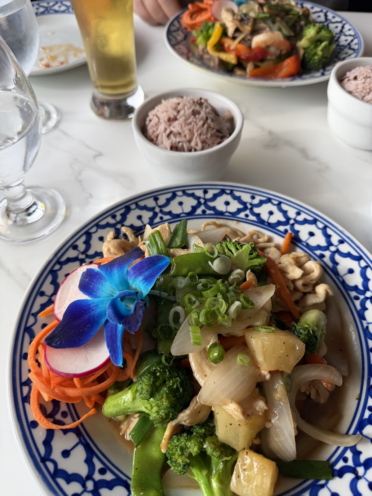 "As soon as we walked in we were kindly greeted and seated immediately! We ordered the Thai iced coffee and tea and both were delicious and beautifully presented! For an appetizer we got the chicken satay skewers with a peanut sauce, very de..."